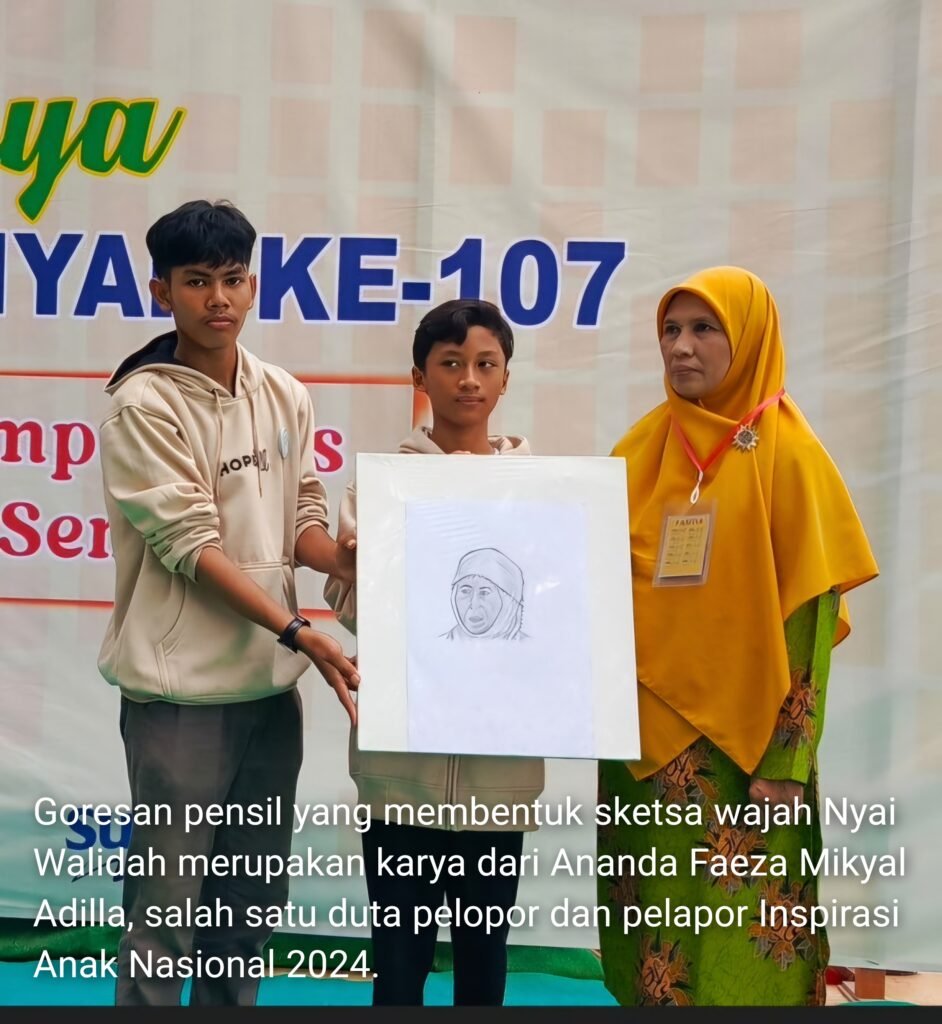 PDMTUBAN.COM-Goresan pensil yang membentuk sketsa wajah Nyai Walidah merupakan karya dari Ananda Faeza Mikyal Adilla, salah satu duta pelopor dan pelapor Inspirasi Anak Nasional 2024. Program ini dikembangkan oleh Majelis Kesejahteraan Sosial Pimpinan Daerah ‘Aisyiyah (PDA) Tuban bekerjasama dengan Kementrian Perlindungan Perempuan dan Anak, Asosiasi Pusat Studi Wanita/Gender dan Anak (ASWGI), serta Pusat Studi Gender (PSG) Universitas Negeri Malang.