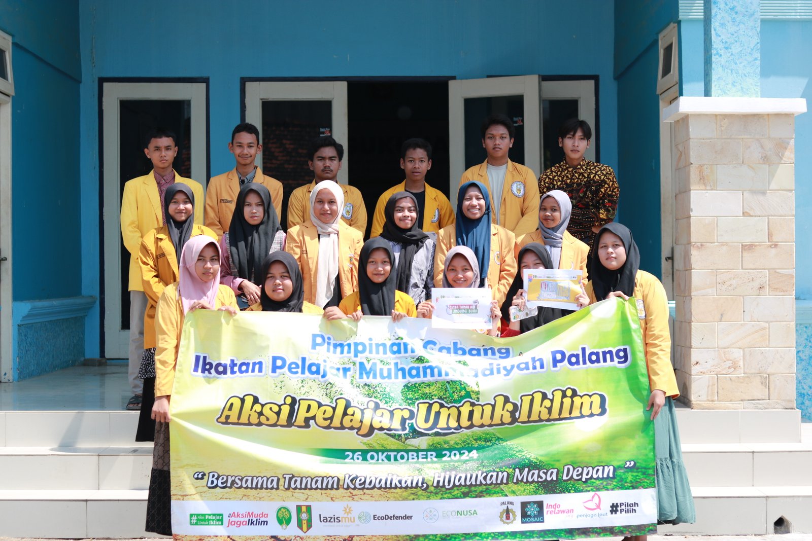 PDMTUBAN.COMPada tanggal 26 Oktober 2024, Pimpinan Cabang Ikatan Pelajar Muhammadiyah (PC IPM) Palang menggelar kegiatan “Aksi Pelajar untuk Iklim” untuk memperingati Hari Sumpah Pemuda. Mengusung tema “Bersama Tanam Kebaikan, Hijaukan Masa Depan,” aksi ini difokuskan pada upaya penghijauan lingkungan dengan memberikan bibit tanaman kepada lembaga-lembaga Muhammadiyah di wilayah Palang, Tuban.