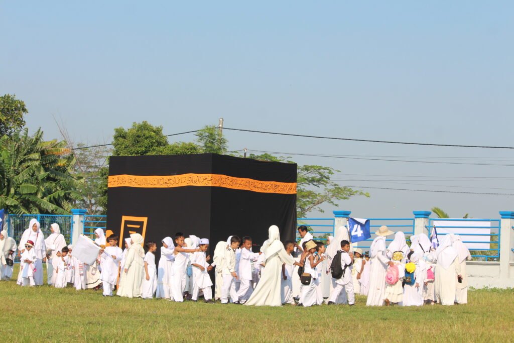 Mereka mengikuti kegiatan manasik haji yang diselenggarakan oleh perguruan Muhammadiyah setempat, sebuah kegiatan edukatif yang tidak hanya sarat nilai-nilai keagamaan, tetapi juga membentuk karakter dan kedisiplinan sejak usia dini.