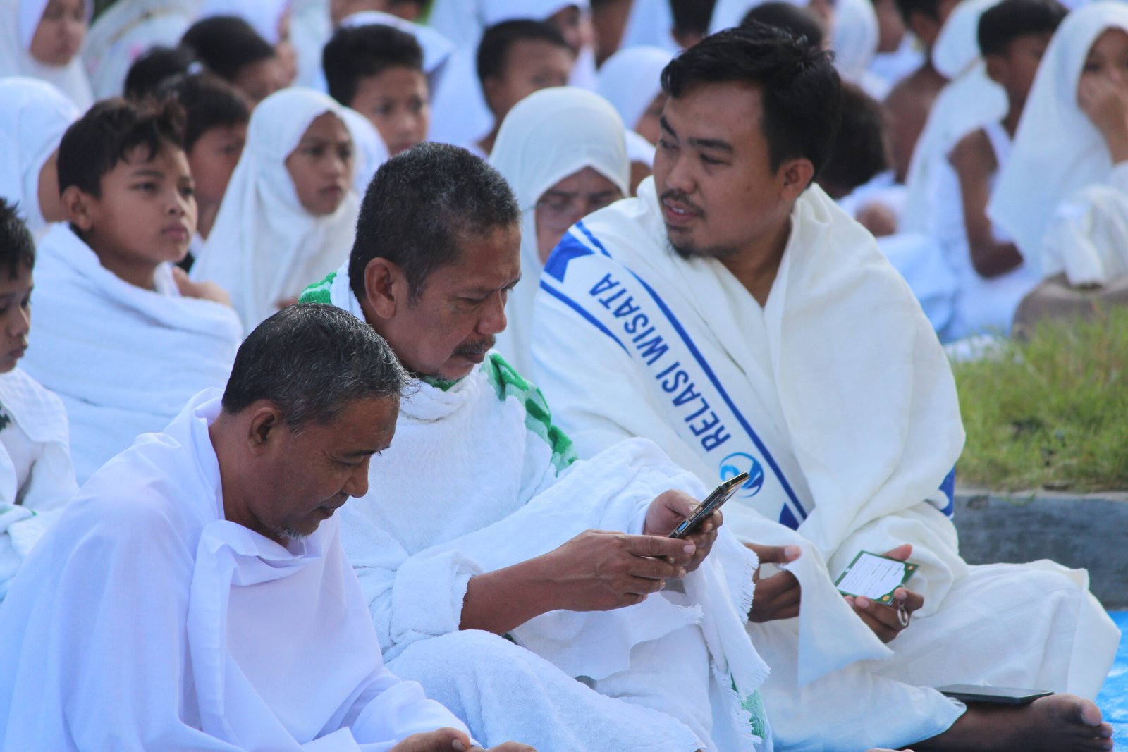 Sebanyak 576 peserta didik dan 70 tenaga pendidik dari berbagai jenjang, mulai dari Kelompok Bermain (KB) hingga Sekolah Menengah Atas (SMA) tampak rapi mengenakan pakaian ihram.