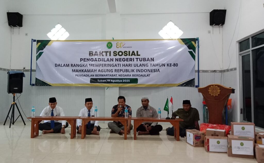 PDMTUBAN.COM-Dalam rangka memperingati Hari Ulang Tahun (HUT) ke-80 Mahkamah Agung Republik Indonesia, Pengadilan Negeri Tuban menggelar kegiatan bakti sosial di Lembaga Kesejahteraan Sosial Anak (LKSA) Tunas Melati Muhammadiyah Tuban, Selasa (19/8/2025).
